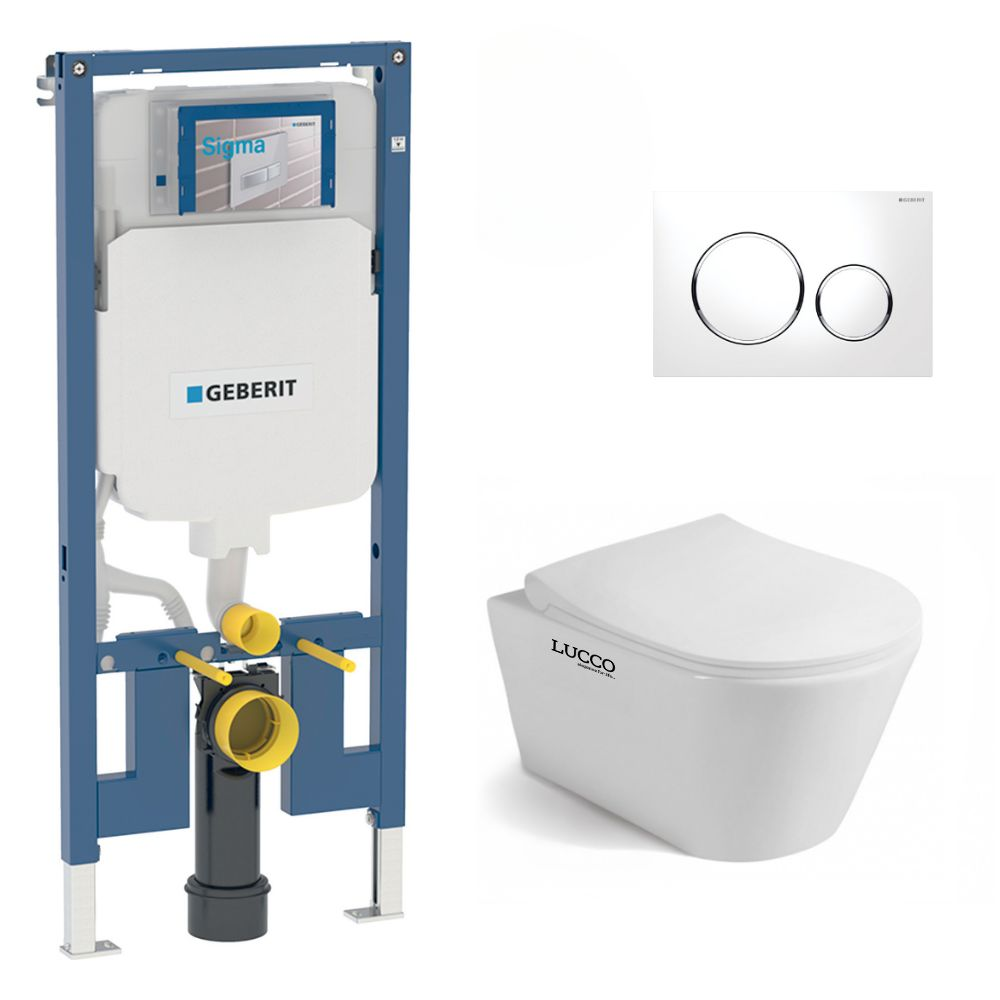 Ce pack WC lie la cuvette de la marque Lucco et la marque Geberit. La qualité des articles de ce pack est reconnue et la modernité ainsi que le design de ceux-ci vous satisferont à coup sûr en vous apportant des solutions adaptées à vos projets. De plus, le pack comprend un manchon de raccordement vous permettant raccorder facilement et rapidement votre bâti aux Standards Européens.
