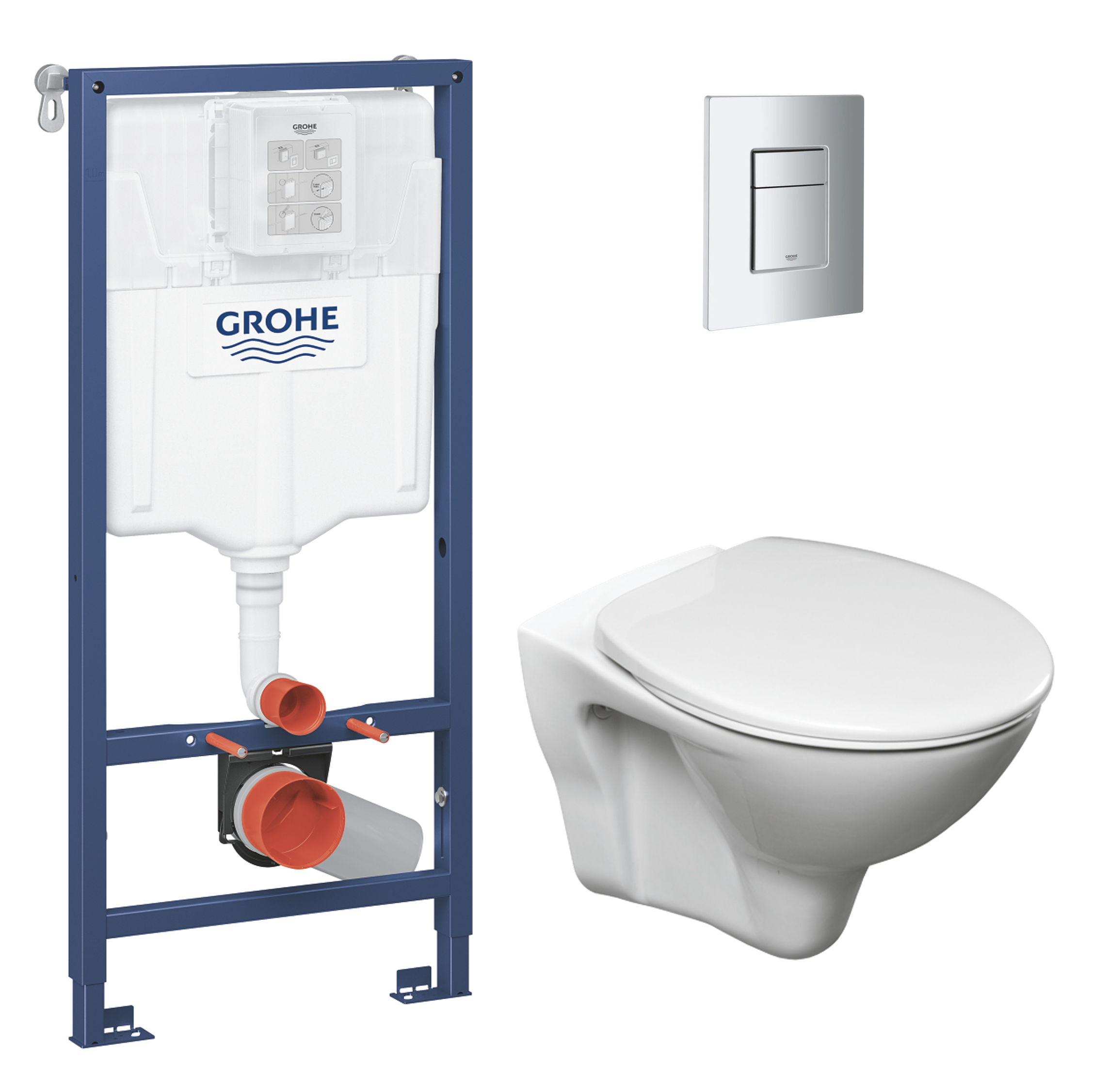 Pack WC Bâti-support Rapid SL + WC suspendu avec bride Jika Neo + Abattant + Plaque Chrome (GROHE-S-LinePro-1)