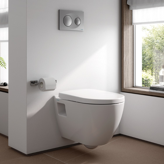 Pack WC Bati-support Geberit UP320 + WC sans bride Serel SM26 + Abattant softclose + Plaque Chrome (GebSM26-N)
