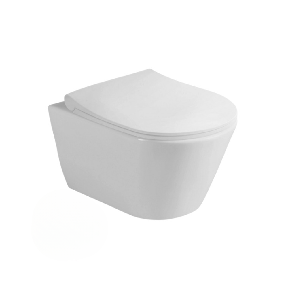 - Lucco Avva Cuvette suspendue sans bride avec abattant frein de chute, Blanc (Avvarimless)