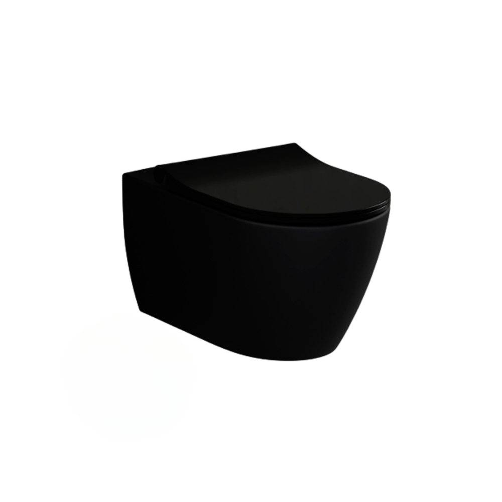 - LIVEA Bello Cuvette suspendue sans bride + Abattant frein de chute, Noir mat (BlackBello)