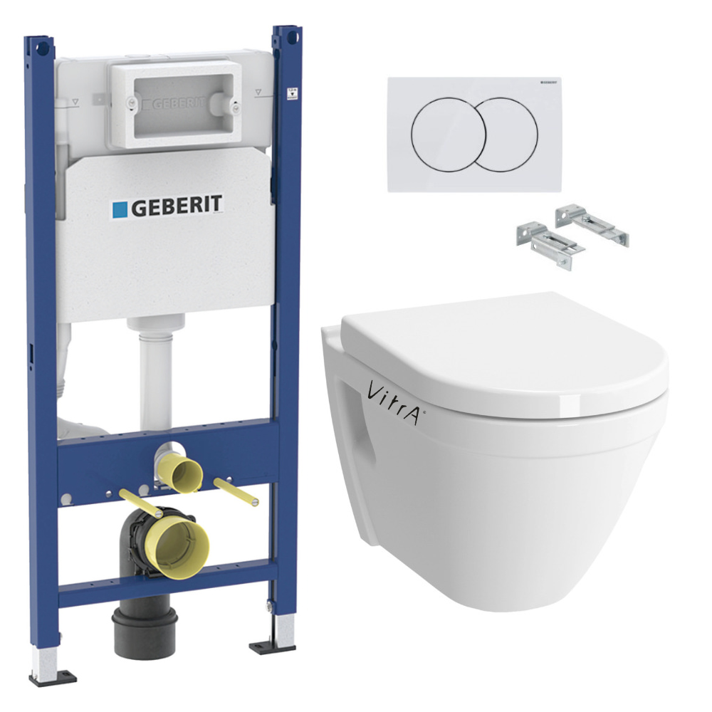 Pack WC Bati-support Geberit Duofix + WC suspendu Vitra S50 + Abattant soft close + Plaque blanche + Set d'isolation phonique (S