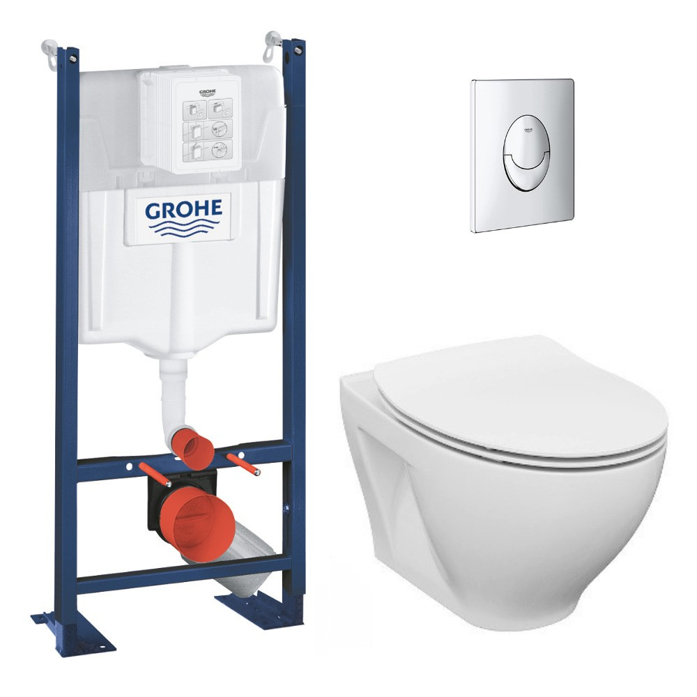 Grohe Pack WC Bâti autoportant Rapid SL + WC sans bride Cersanit + Abattant softclose + Plaque chrome (ProjectDormo-2)