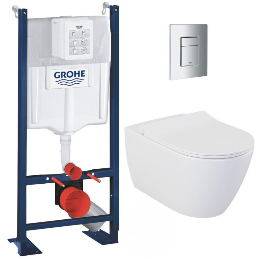 Grohe Pack WC Bâti-autoportant Rapid SL + WC sans bride Bello avec fixations invisibles + Abattant softclose + Plaque chrome mat