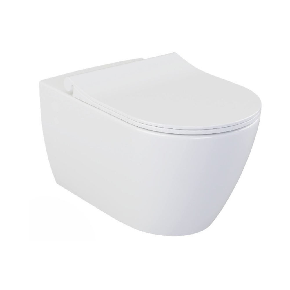 WC suspendu sans bride Bello + Abattant frein de chute, Blanc (BelloRimless) :