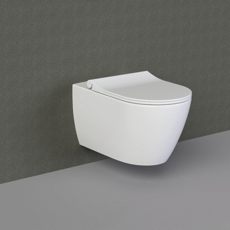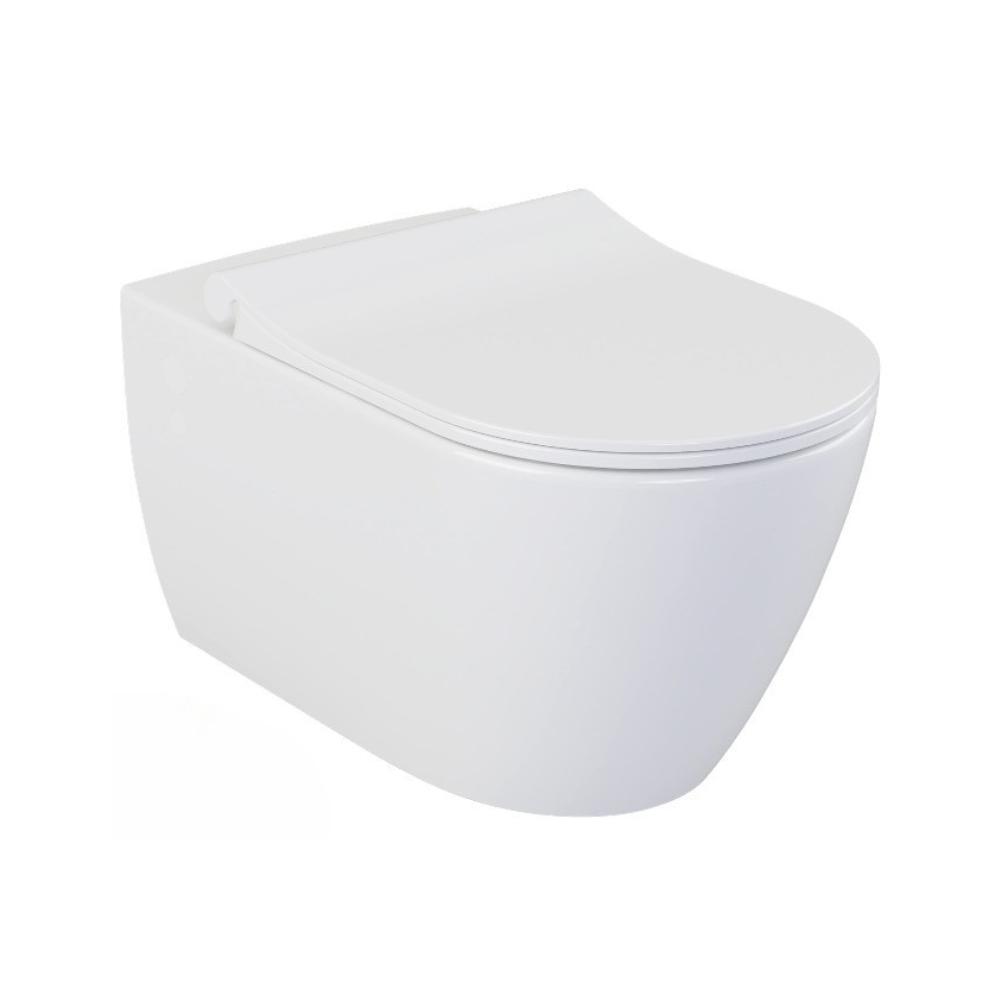 WC suspendu sans bride Bello + Abattant frein de chute, Blanc (BelloRimless) :