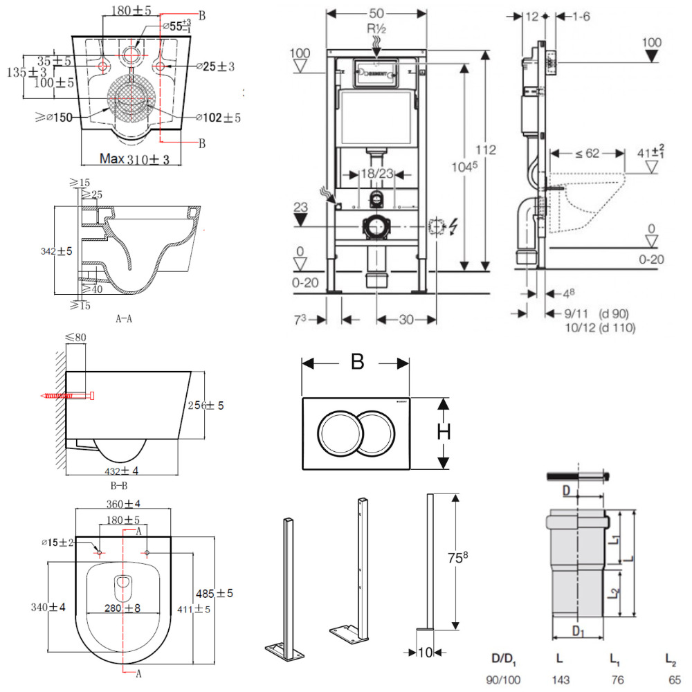 - Pour une utilisation avec des bâti-supports Geberit Duofix pour un meilleur transfert des forces dans le sol