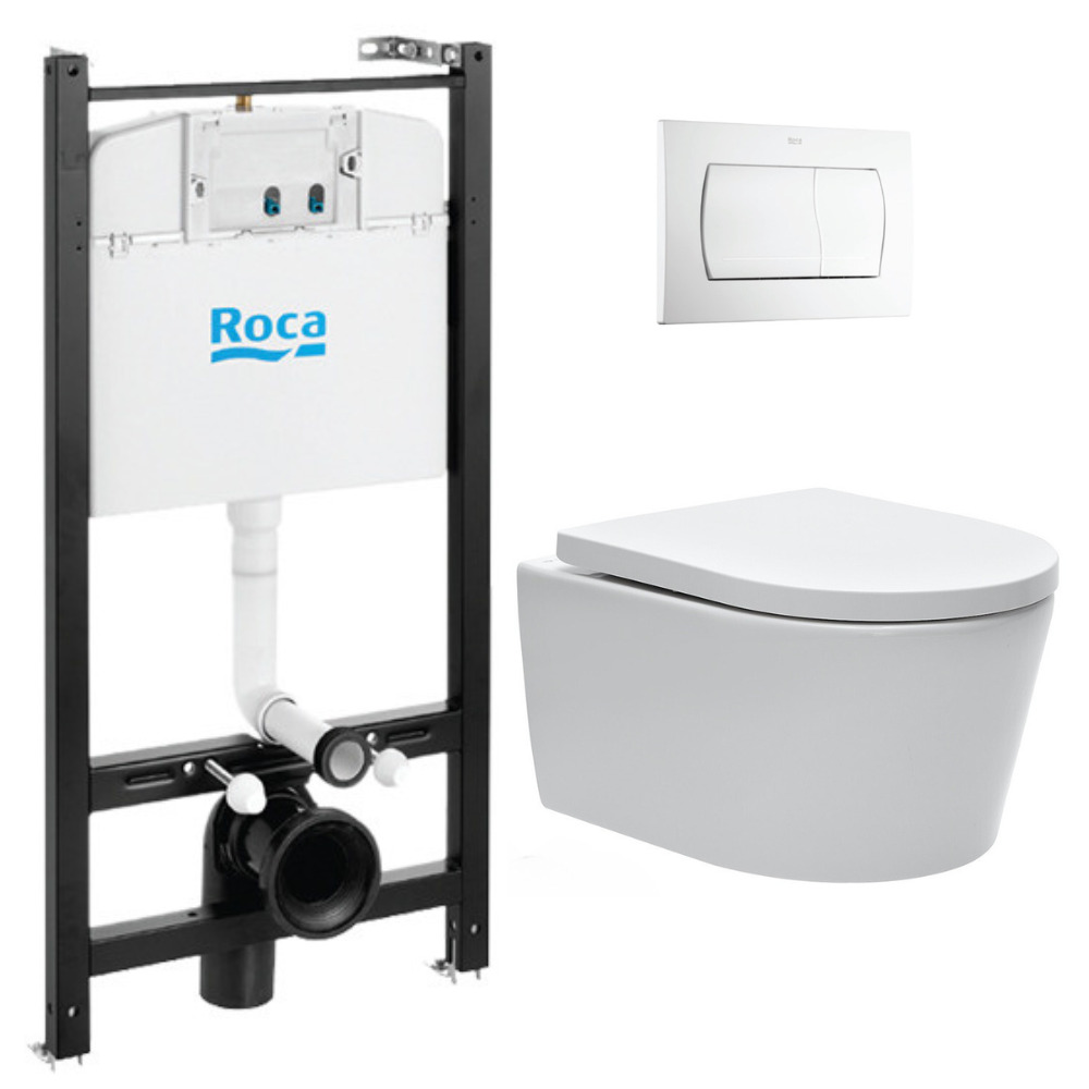 Swiss Aqua Technologies Pack Bâti-support Roca Active + WC SAT sans bride et fixations invisibles + plaque blanche (RocaActiveSATrimless-1-DE)