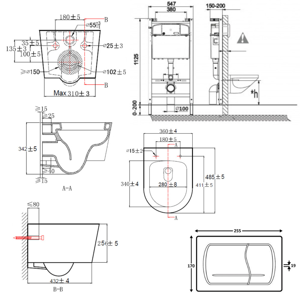 - Cuvette suspendue sans bride et fixations invisibles + abattant frein de chute (SATBRE010RREXP).