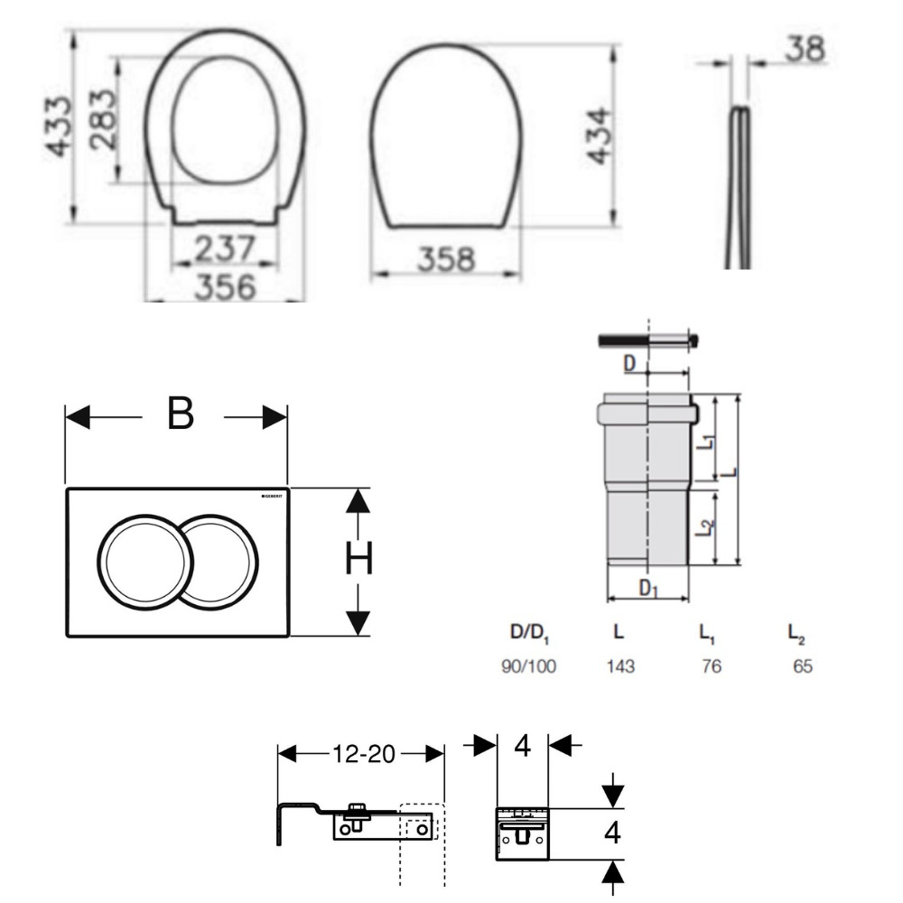- Geberit DUOFIXBasic pour toilettes suspendues, avec réservoir Delta (111.153.00.1)