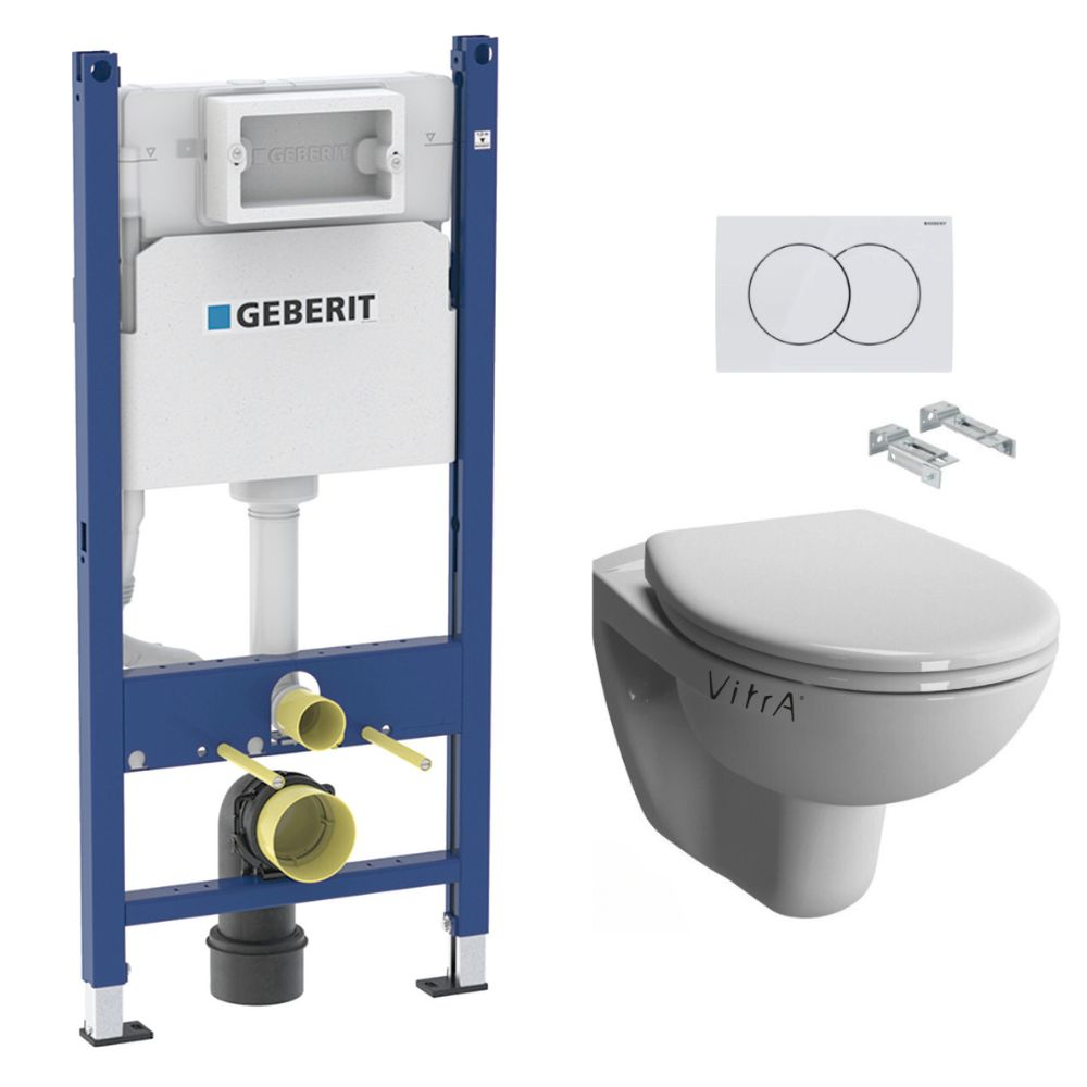 Optez pour la qualité et la simplicité d’installation du Pack WC Bâti-support Duofix + WC sans bride Vitra Normus + Abattant softclose + Plaque blanche (NormusRimlessGeb3).