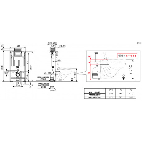Alca Bâti-support autoportant 85cm pour WC suspendu (AM118/850F) :