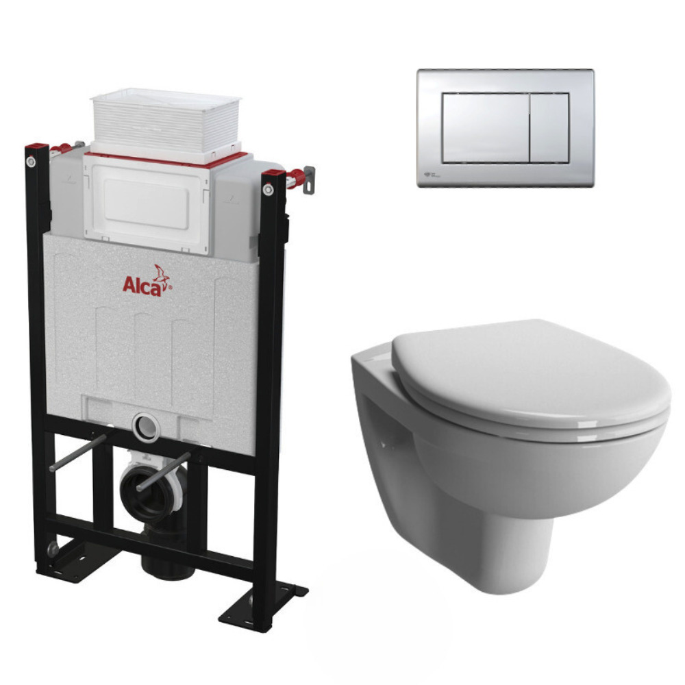 Alca Pack WC Bâti 85 cm autoportant + WC sans bride Vitra Normus + Abattant softclose + Plaque chrome