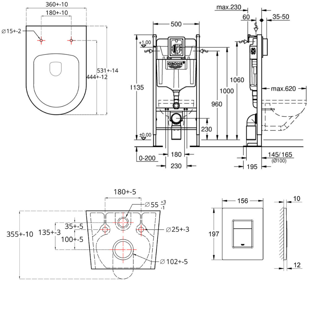 Grohe Pack WC Bâti autoportant + WC sans bride SAT Brevis + Abattant ultra-fin softclose + Plaque chrome mat (ProjectBrevis-5)