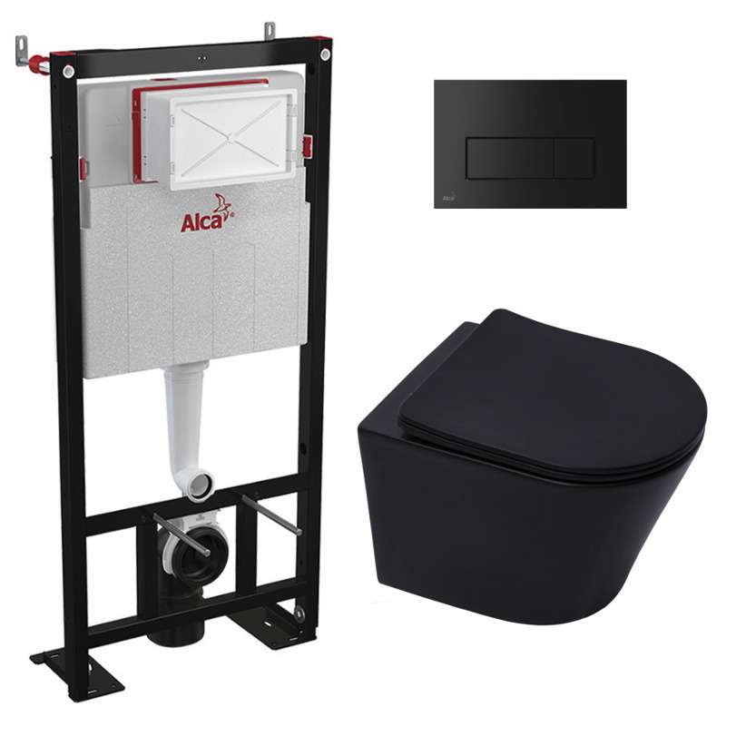Caractéristiques du Pack WC Bâti autoportant + WC sans bride Alfa avec fixations invisibles noir mat + Abattant softclose + Plaque Noire mat (AlcaBlackInfinitio-578) :