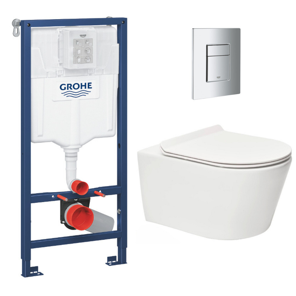 Grohe Pack WC Bâti-support Rapid SL + WC sans bride Brevis + Abattant softclose + Plaque chrome (RapidSL-Brevis-1-SP)