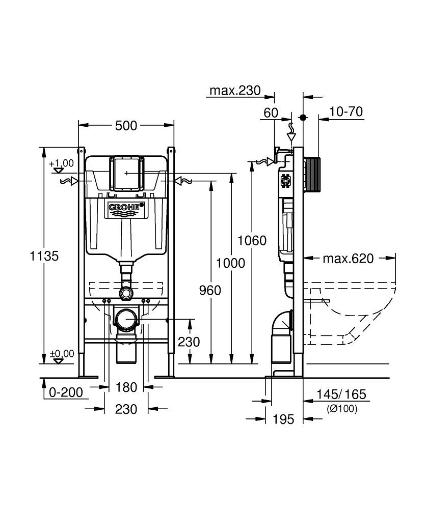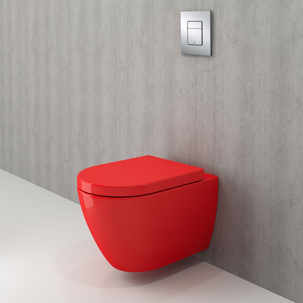 Grohe Pack WC Rapid SL autoportant + cuvette Bello rouge brillant sans bride + plaque chrome (ProjectRedBello-1)
