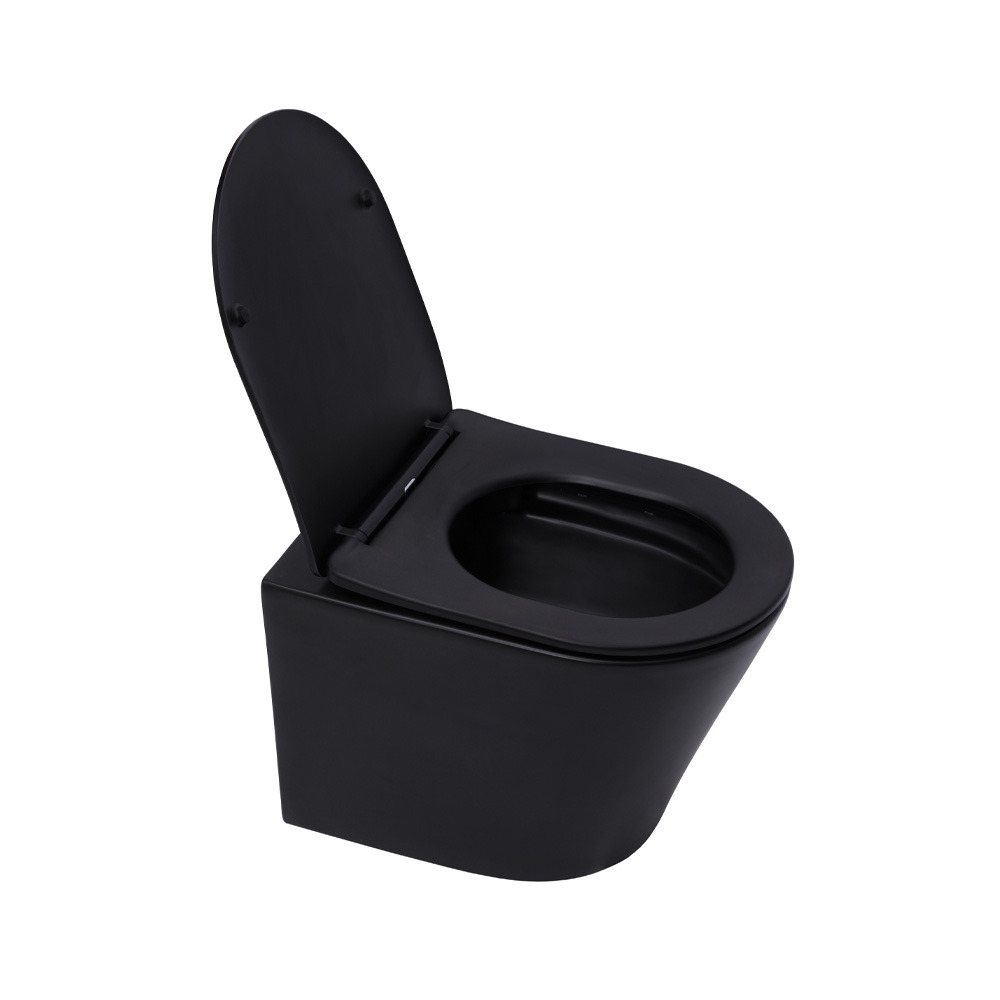 - WC suspendu Infinitio noir mat sans bride et fixations invisibles + abattant frein de chute (SATINF010RREXPBKM)