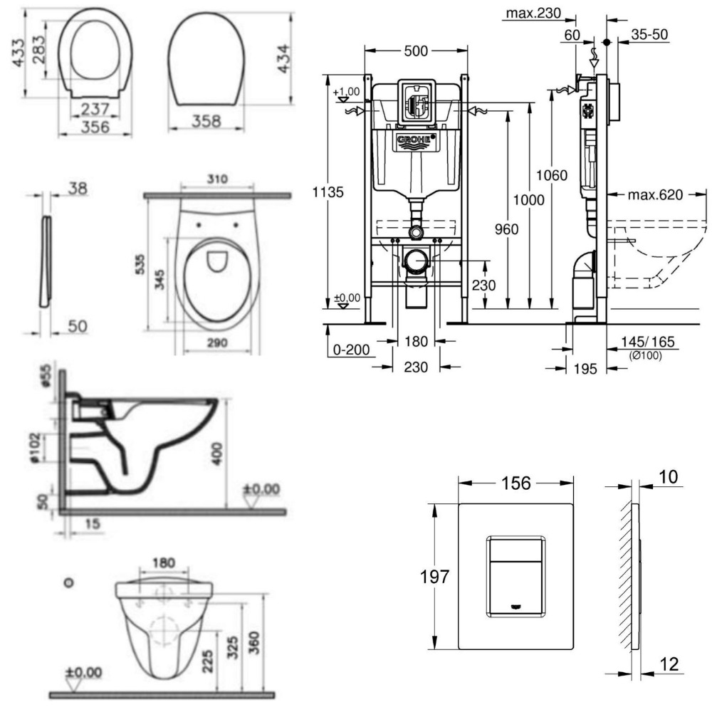 - Grohe RAPID SL Project bâti support autoportant pour WC, 1.13 M (39145000)