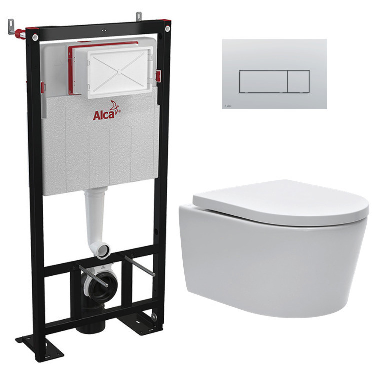 Alca Pack WC Bâti-autoportant + WC SAT sans bride + Abattant softclose + Plaque Chrome mat (AlcaSATrimless-M572)