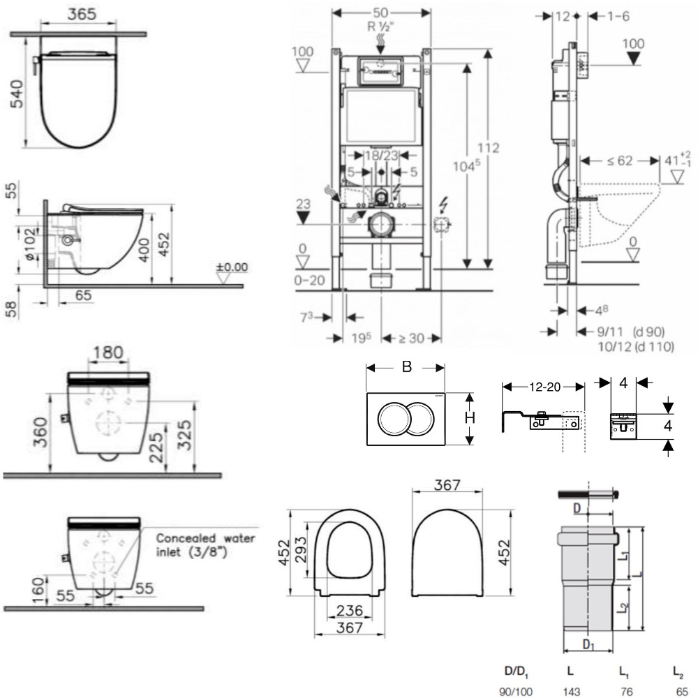 Caractéristiques du Pack WC Bâti-support Duofix + WC sans bride Infinitio avec fonction bidet thermostatique + Abattant softclose + Plaque blanche (SATCleanGeb3) :