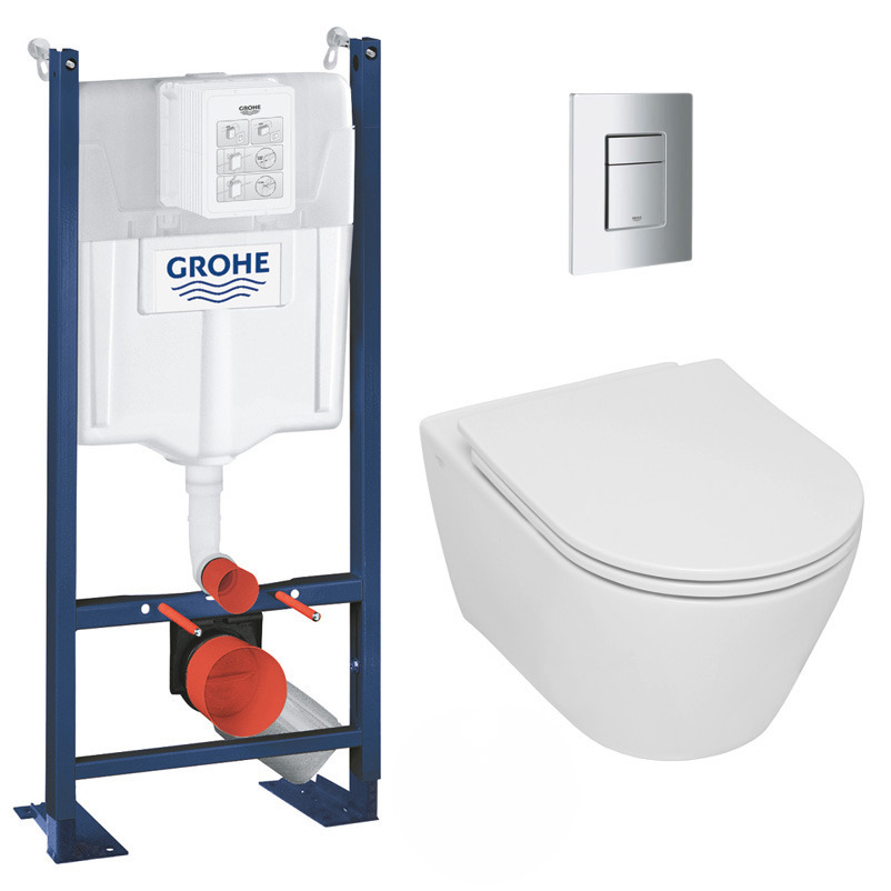 Grohe Pack WC Bâti Rapid SL autoportant + WC Serel, fixations invisibles + Abattant SoftClose + Plaque Chrome (ProjectSP26-1-SP)