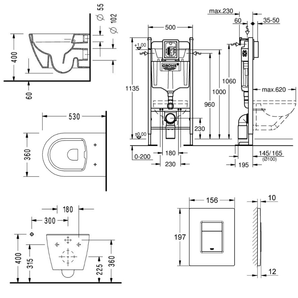 Grohe RAPID SL Project bâti support autoportant pour WC, 1.13 M (39145000) :