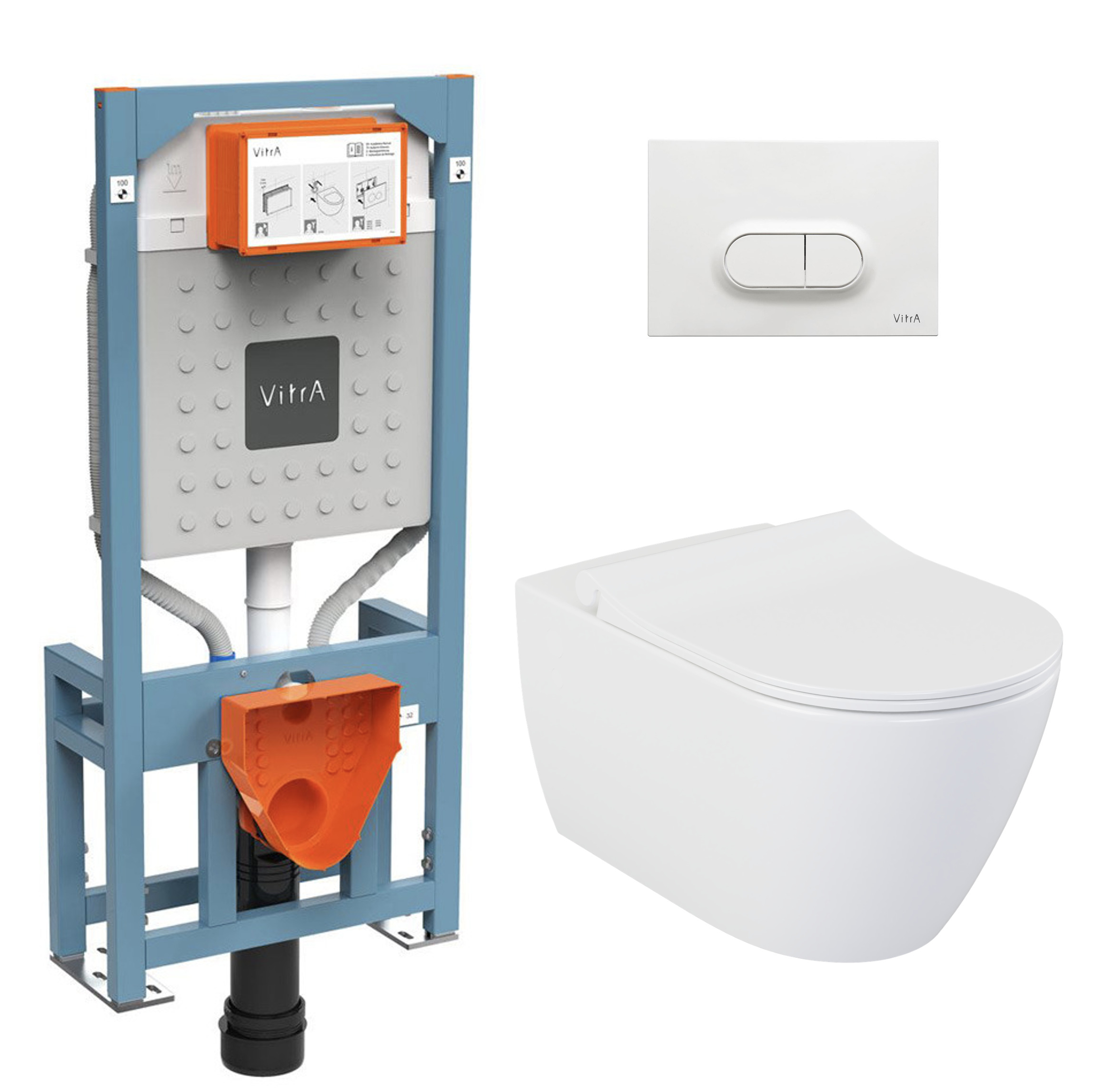 Vitra Pack Bâti-support autoportant 112cm + Cuvette Livea sans bride, abattant softclose + Plaque blanche brillante
