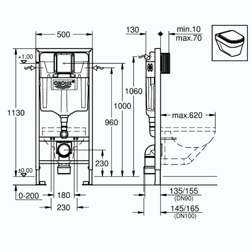 Bati support Grohe Rapid SL pour WC Suspendu (38528001)