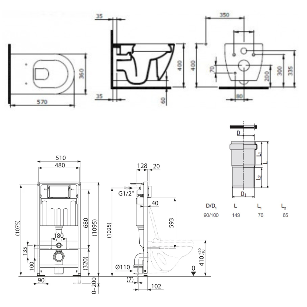 - Plage de réglage devant mur : 135-205mm (lorsque monté sur des supports muraux)