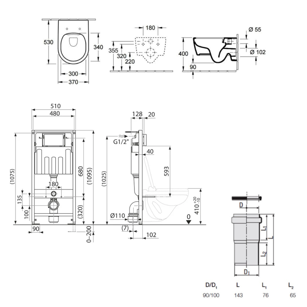 - Villeroy & Boch ViConnect Pro Bâti support pour WC suspendu (92214200)