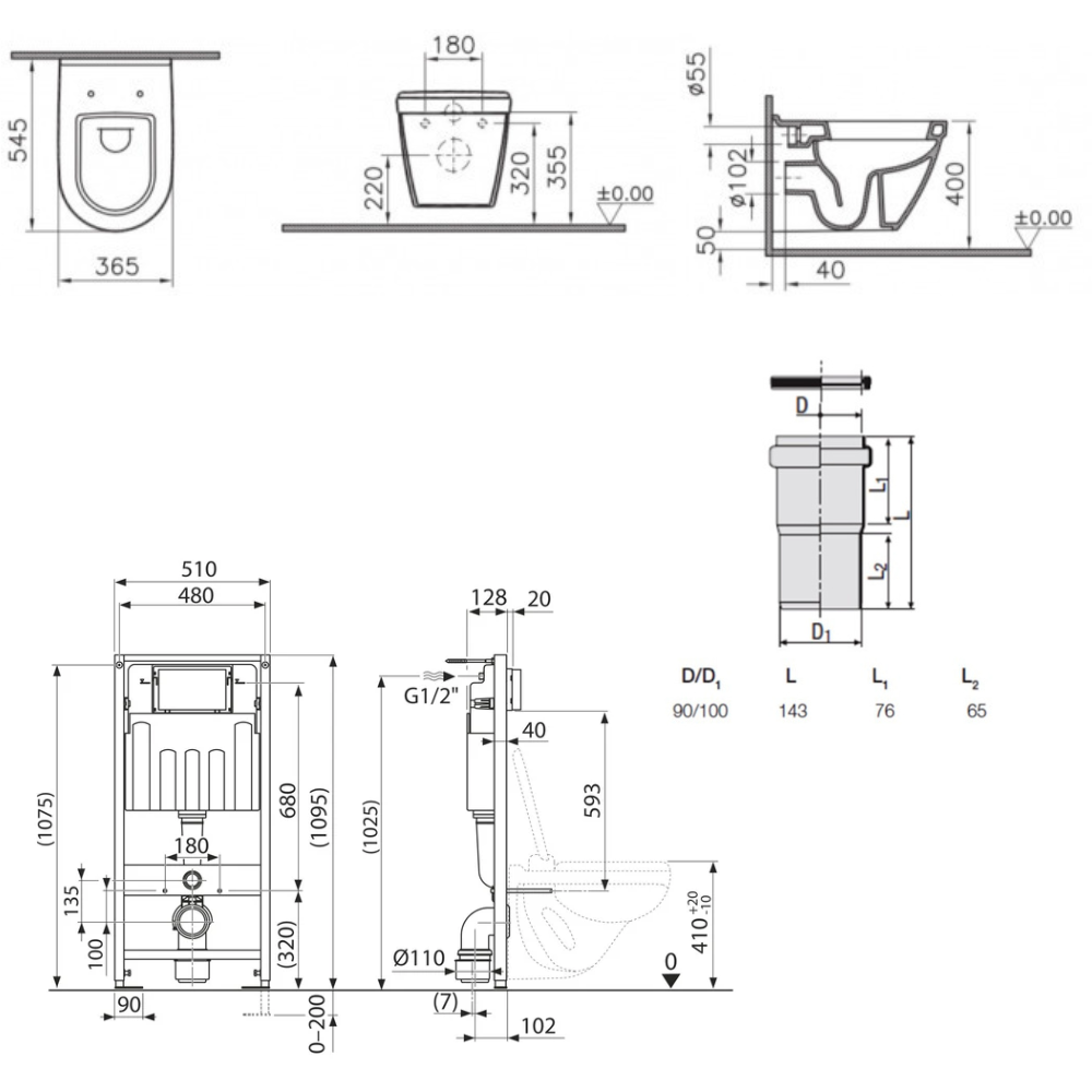 Caractéristiques du Pack WC bâti-support Villeroy & Boch + Cuvette Vitra S50 + Abattant softclose + Plaque blanche (ViConnectS50-2) :