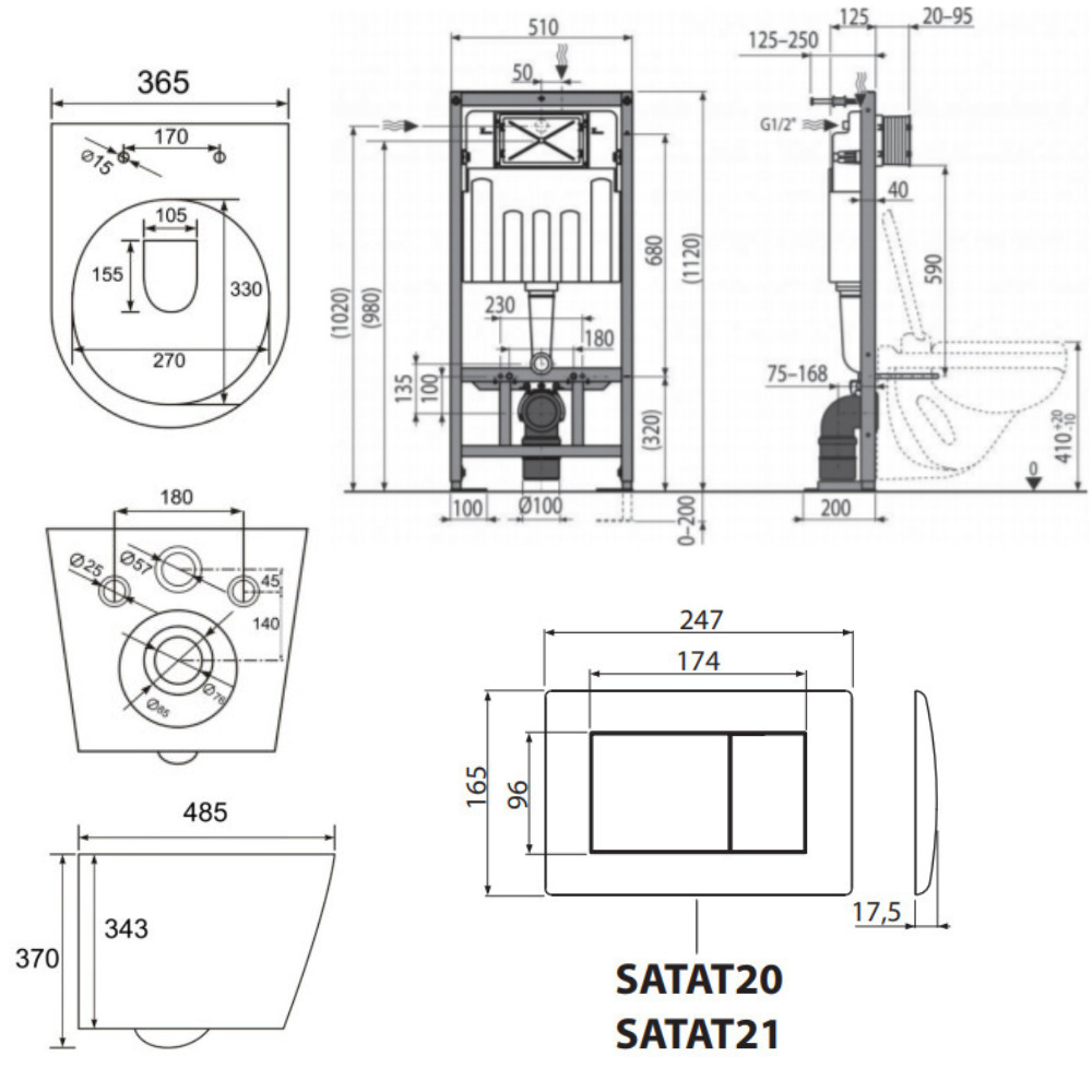 Caractéristiques Pack WC bâti-autoportant + WC SAT Infinitio sans bride fixations invisibles + Abattant softclose + Plaque blanche (SMART-Infinitio-M270) :