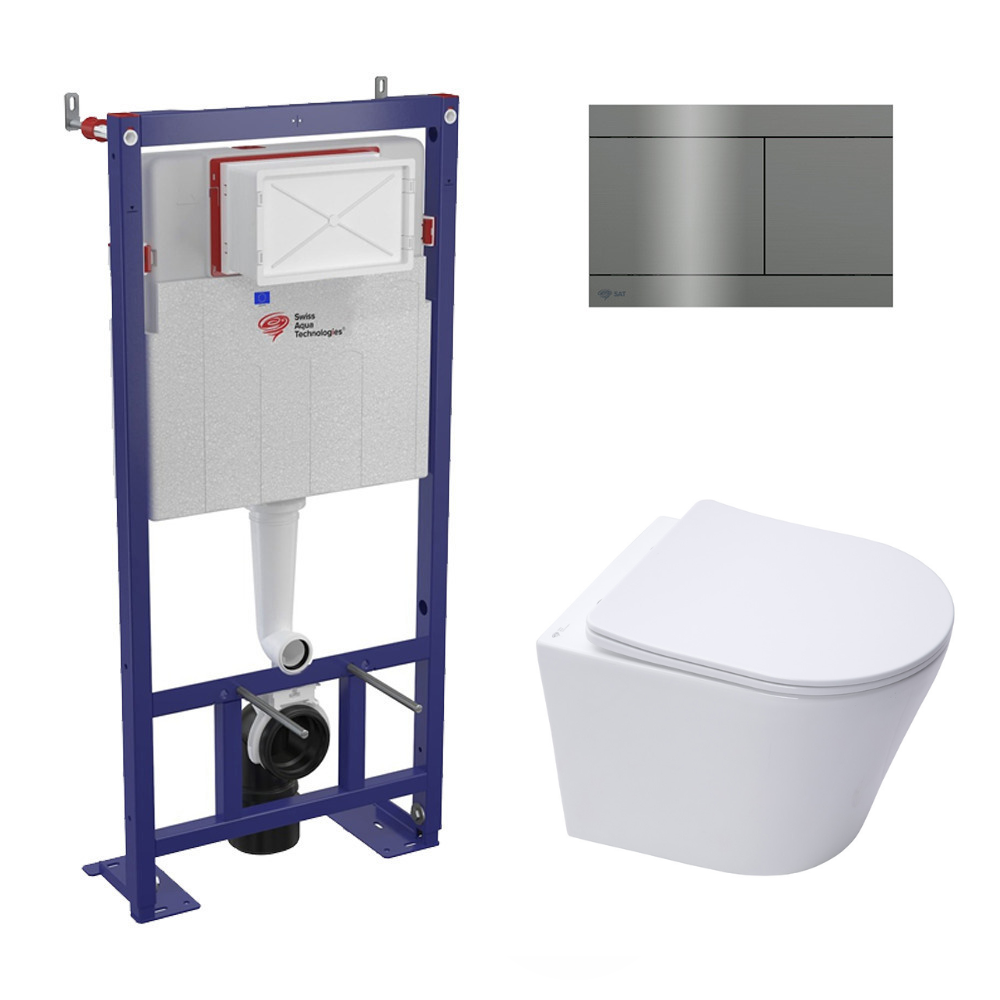Swiss Aqua Technologies Pack WC bâti-autoportant + WC Infinitio sans bride + Abattant softclose + plaque en acier inoxydable, revêtement PVD, Gun Metal