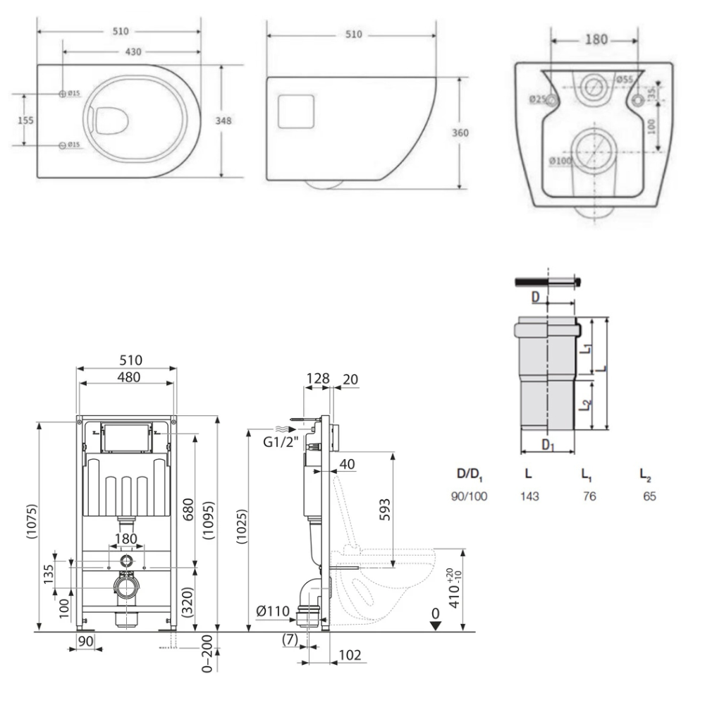 - Redi Manchon de raccordement Ø 90/100 MM pour Rapid SL ou Geberit (VS0564190)