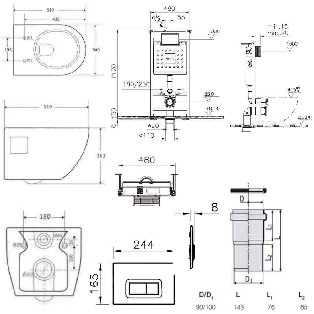 - Compatibles avec toutes les plaque de commande VitrA
