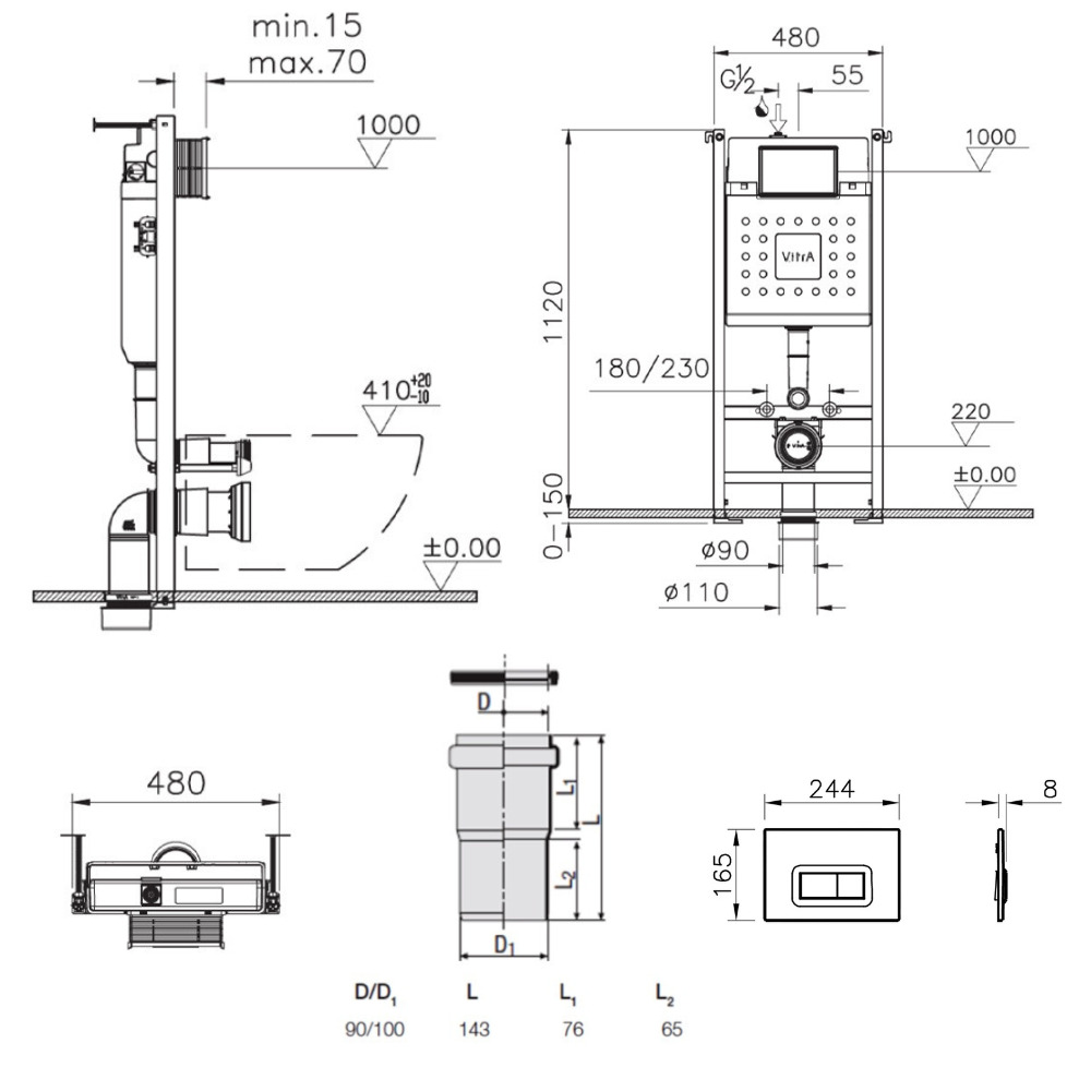 - Compatibles avec toutes les plaque de commande VitrA