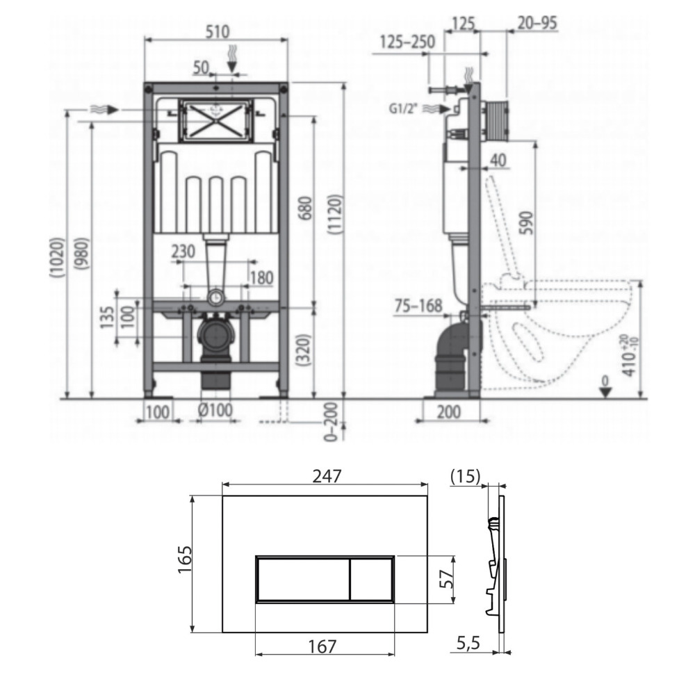 - Compatible avec tous les systèmes d'installation et réservoirs pré-muraux Alcaplast.