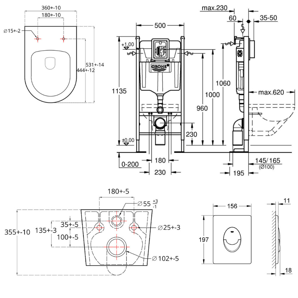 Ce set se distingue par ses caractéristiques remarquables. Le bâti-support autoportant Grohe (39145000), conçu pour une installation robuste et adapatable, offrira une base solide à votre WC suspendu.
