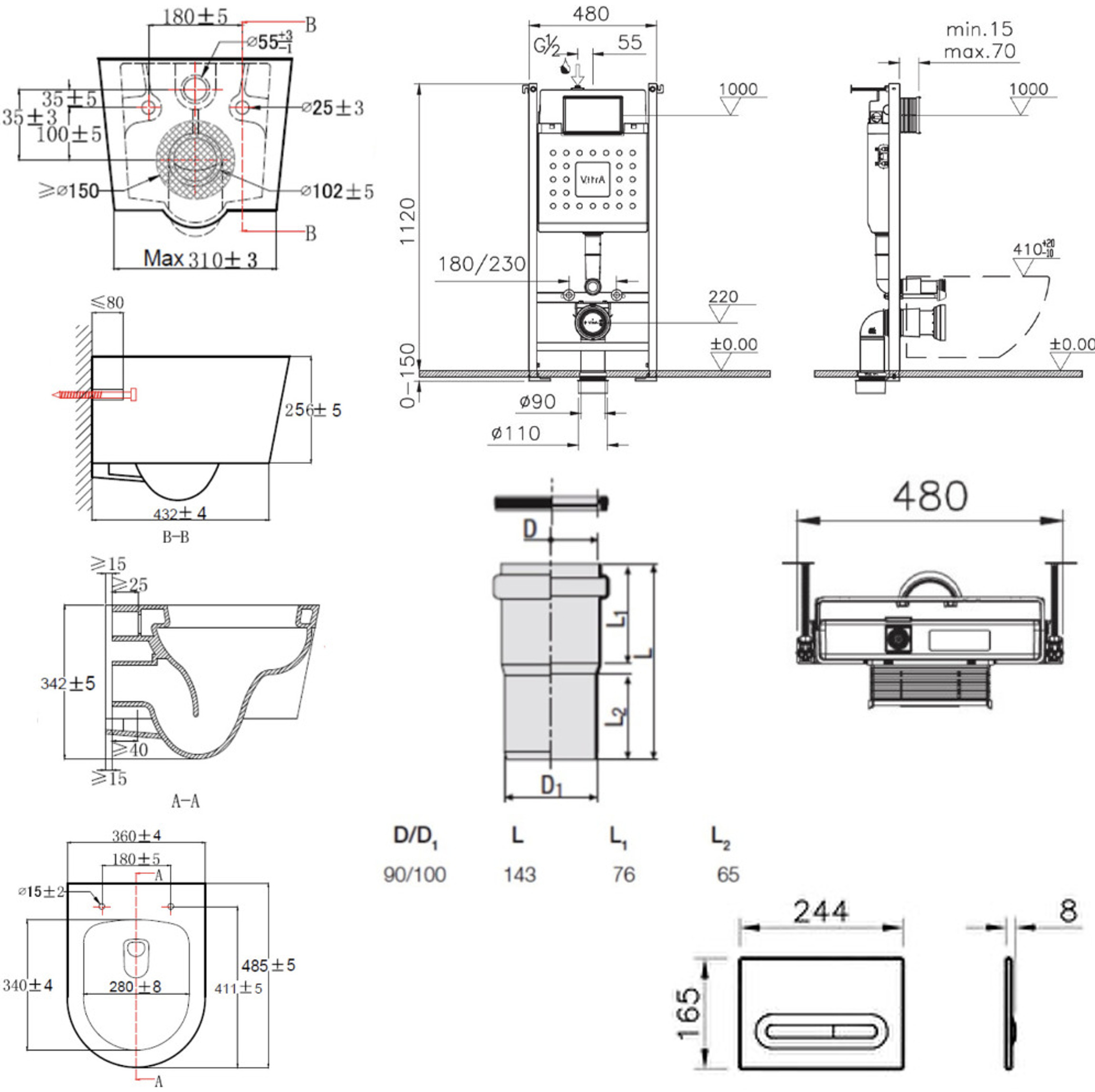 Caractéristiques du Pack WC Bâti-support V-Fix Core + WC SAT sans bride et fixations invisibles + Plaque Chrome brillant (V-FixSATrimless-8) :