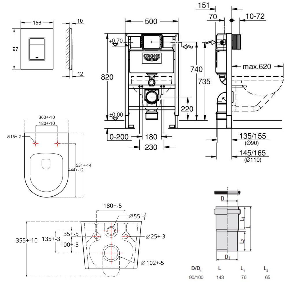 Complétez cet ensemble avec la plaque de commande double touche Grohe Even (38966KF0), arborant une élégante finition noir mat et dotée de la technologie anti-empreintes pour une propreté impeccable.