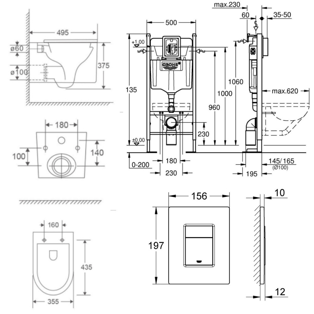 Grohe Pack WC Bâti autoportant + WC sans bride SAT + Abattant SoftClose + Plaque Chrome (ProjectDelano-1)