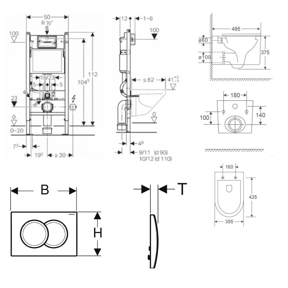 - Geberit DUOFIXBasic pour toilettes suspendues, avec réservoir Delta (111.153.00.1)