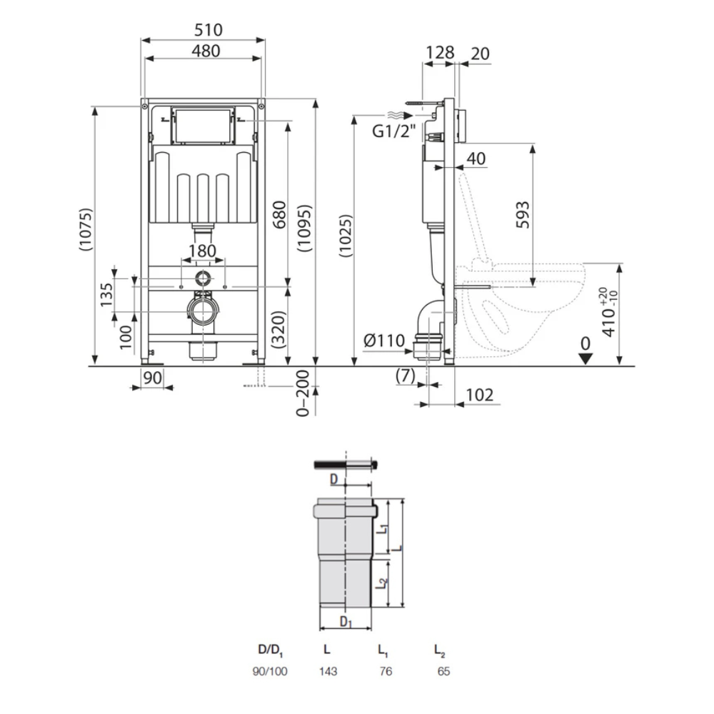 - Redi Manchon de raccordement Ø 90/100 MM pour Rapid SL ou Geberit (VS0564190)