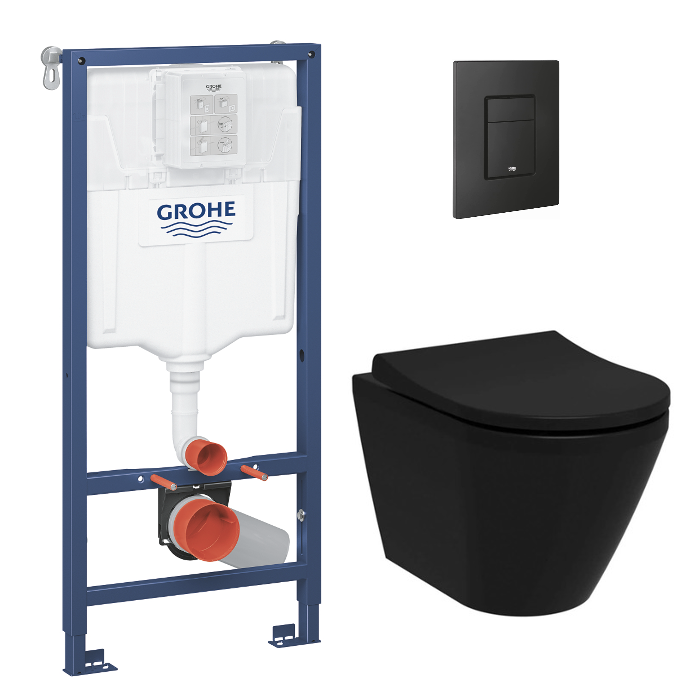 Grohe Rapid SL Pack WC bâti-support + WC sans bride Vitra Integra + Abattant SoftClose + Plaque noir mat (RapidSL-BlackIntegra-KF0)