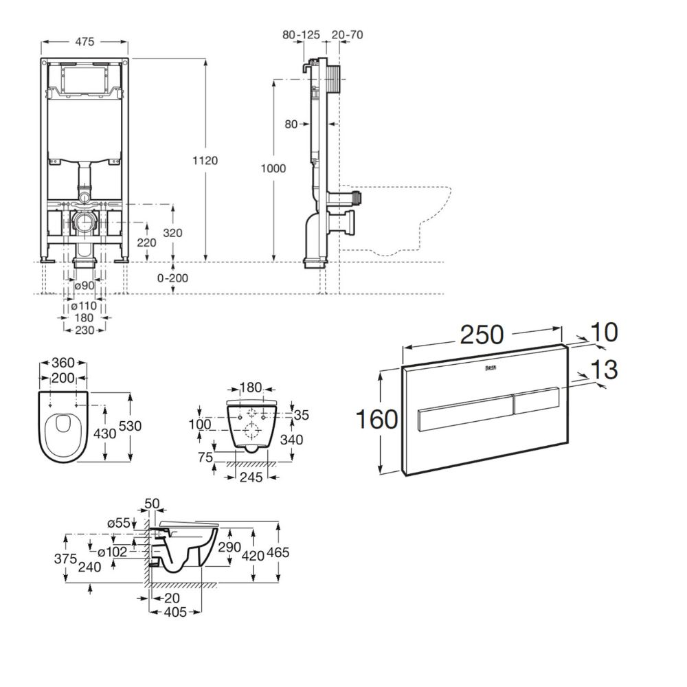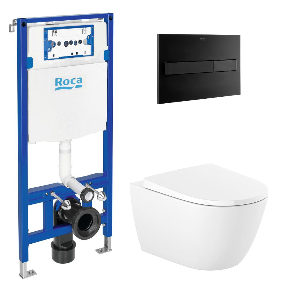 Caractéristiques du Pack WC Bâti support Roca Duplo One + Cuvette sans bride Roca Ona + plaque de déclenchement : Noir (RocaDuploOneOna-3)