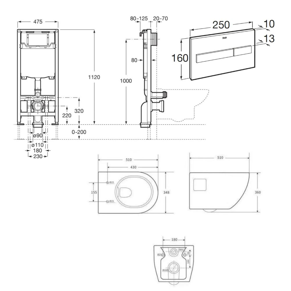 Caractéristiques du Pack WC Bâti support Roca Duplo One + Cuvette sans bride SAT Project + plaque de déclenchement, Noir (RocaActiveRProject-3):