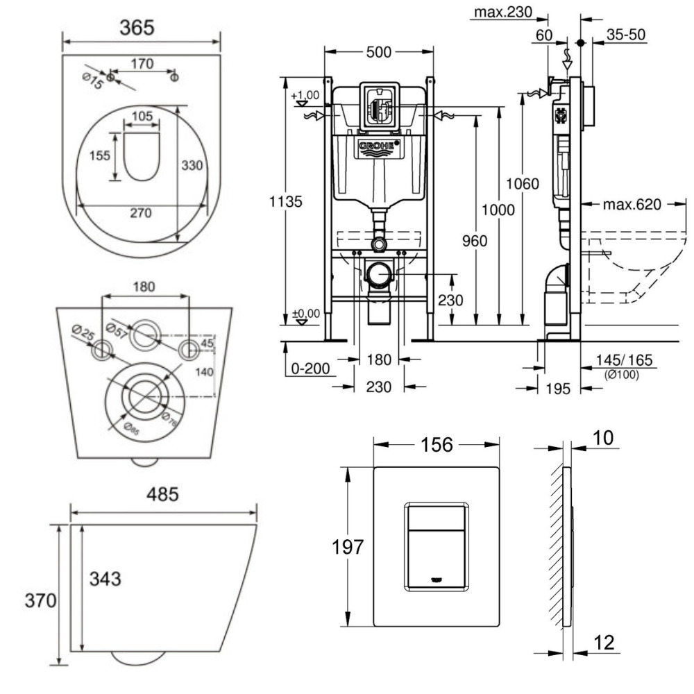 - Grohe RAPID SL Project bâti support autoportant pour WC, 1.13 M (39145000)