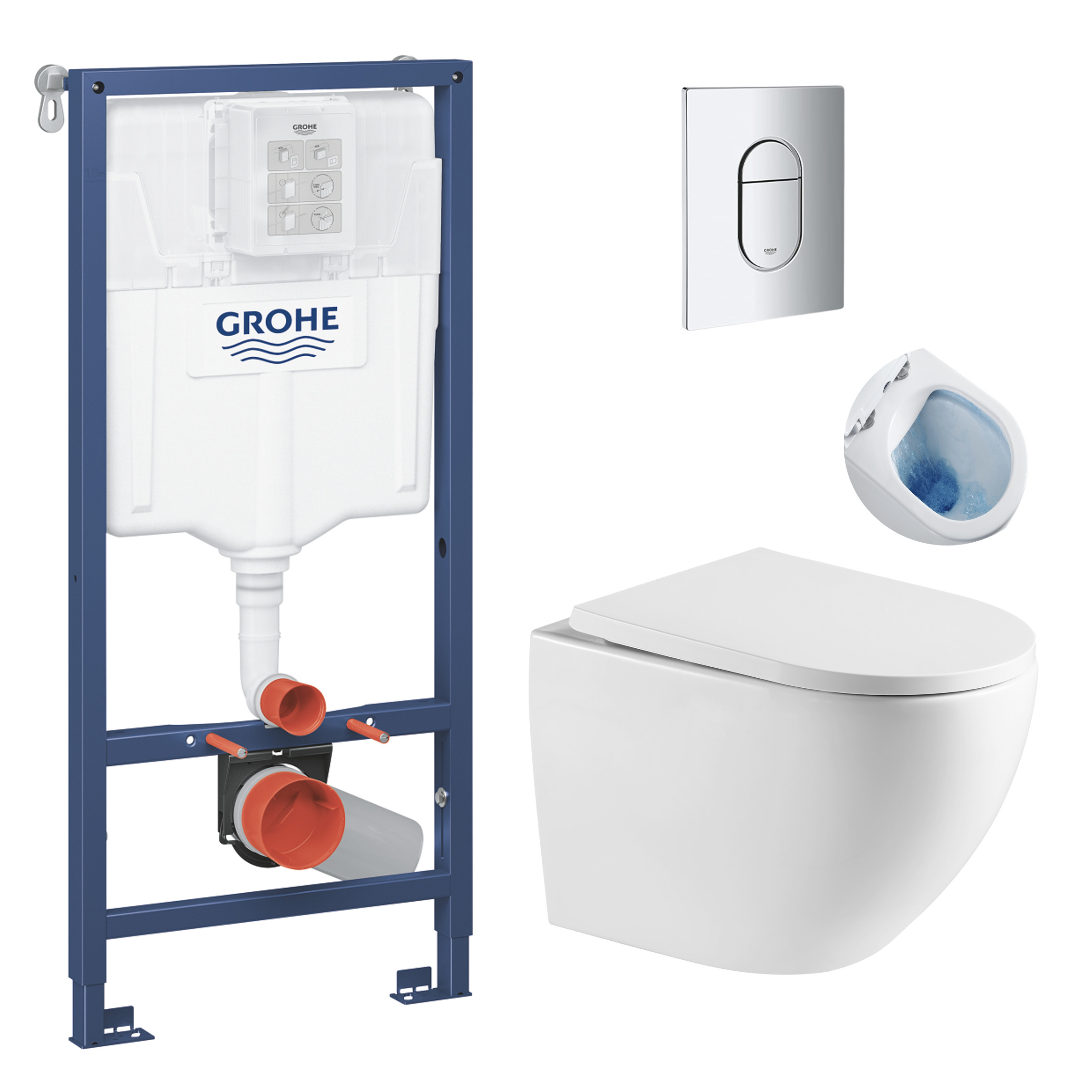 Caractéristiques du Pack WC Bâti-support + WC SAT Fusion sans bride, fixations invisibles + Plaque + Set d’isolation phonique (ArenaFusion) :