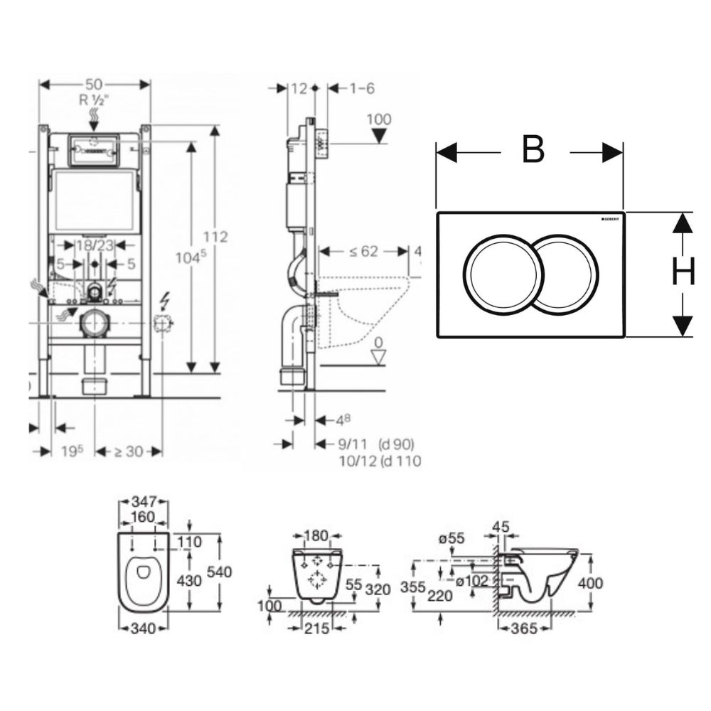 Caractéristiques de Geberit Delta Pack bâti-support Duofix 112cm + Plaque de commande Delta01, Blanche + Fixations murales (111.154.11.2):